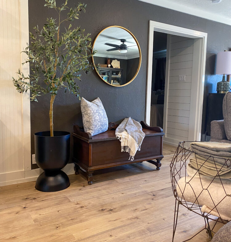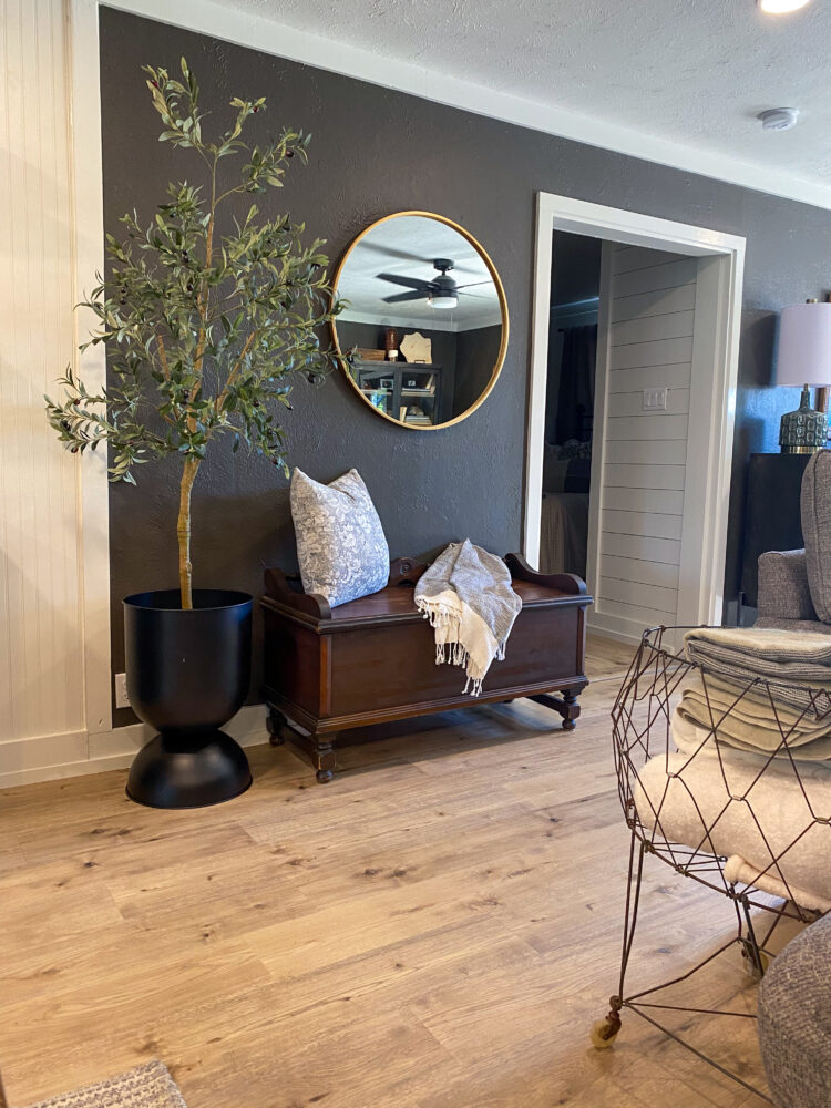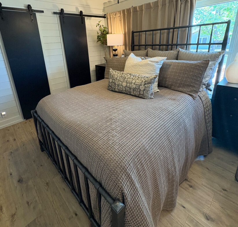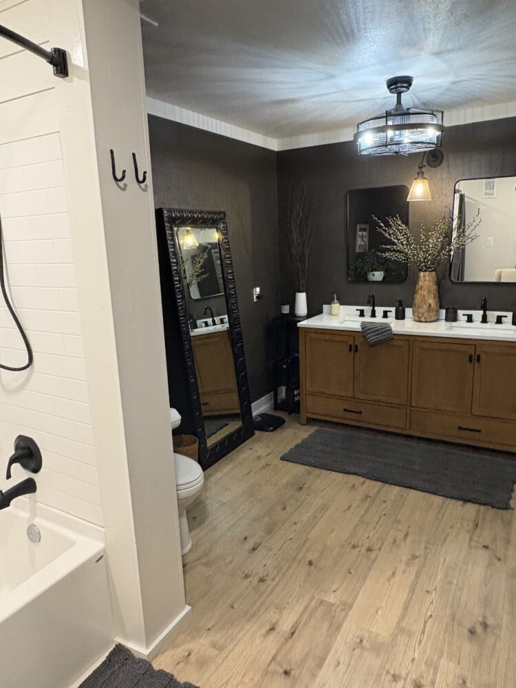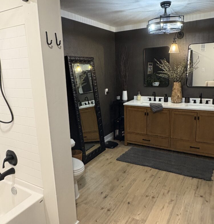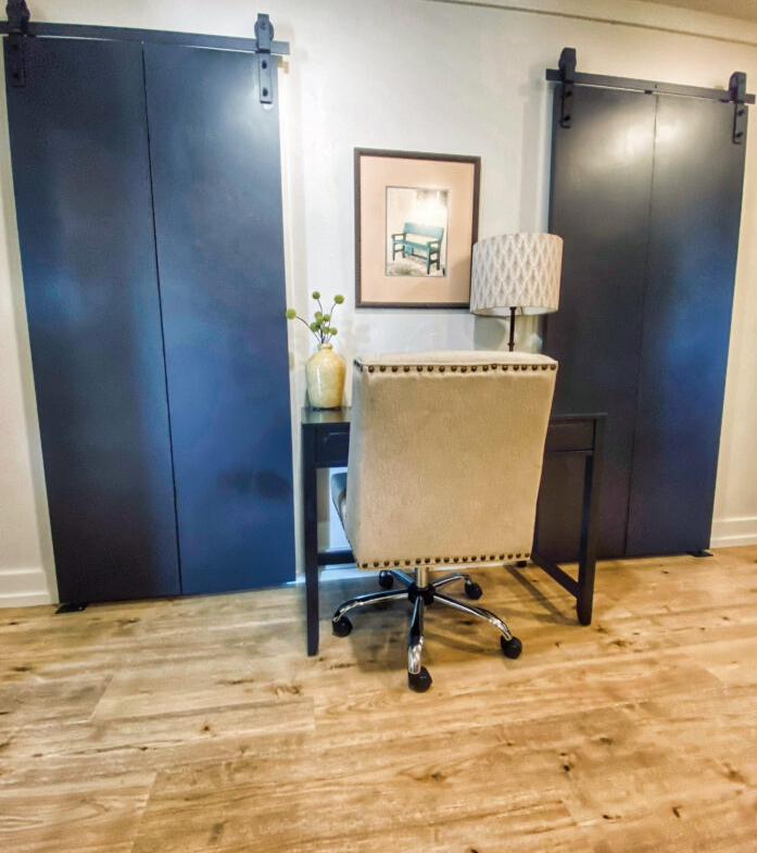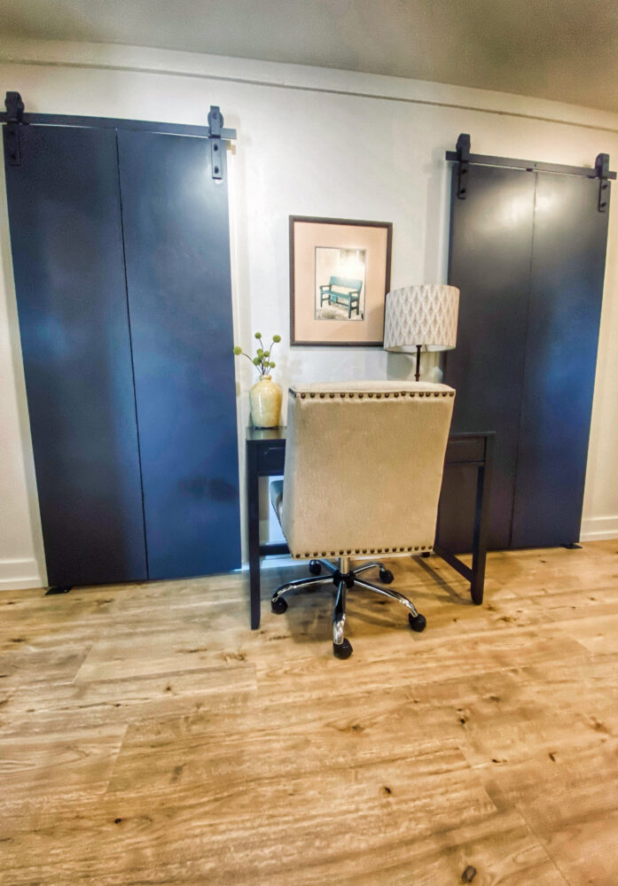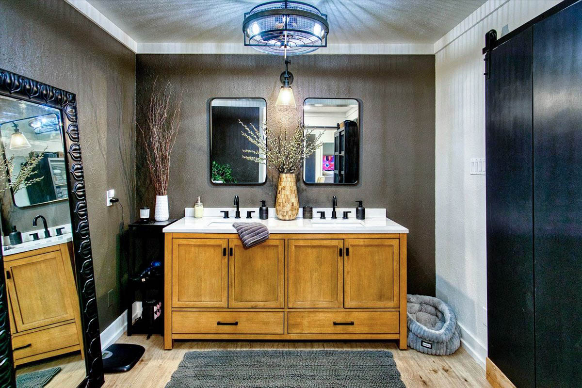 The kitchen is a standout with beautiful floating cabinetry, sleek modern appliances, a large stainless-steel sink, warm butcher block countertops and walk-in pantry make cooking and entertaining a pleasure.