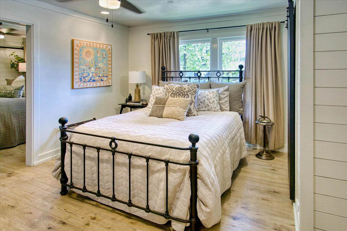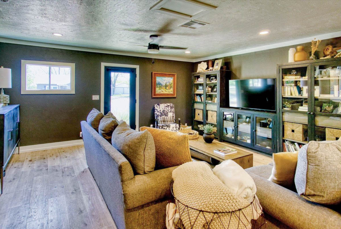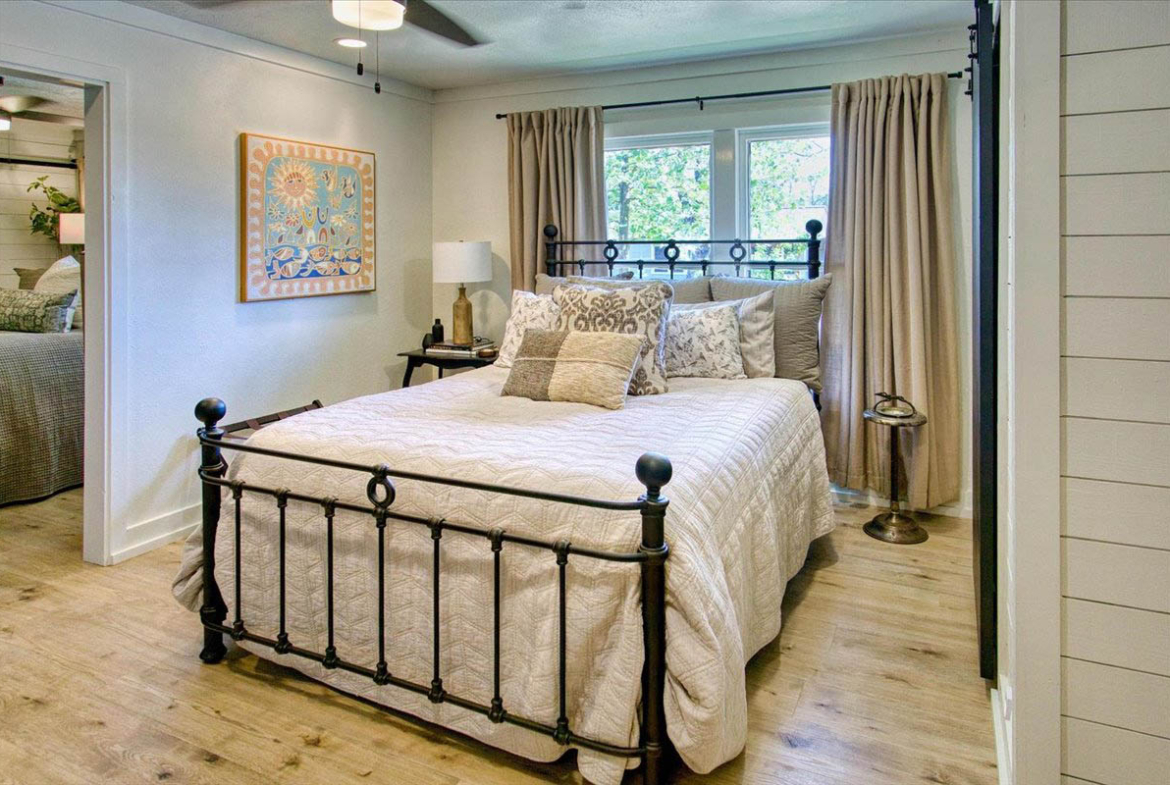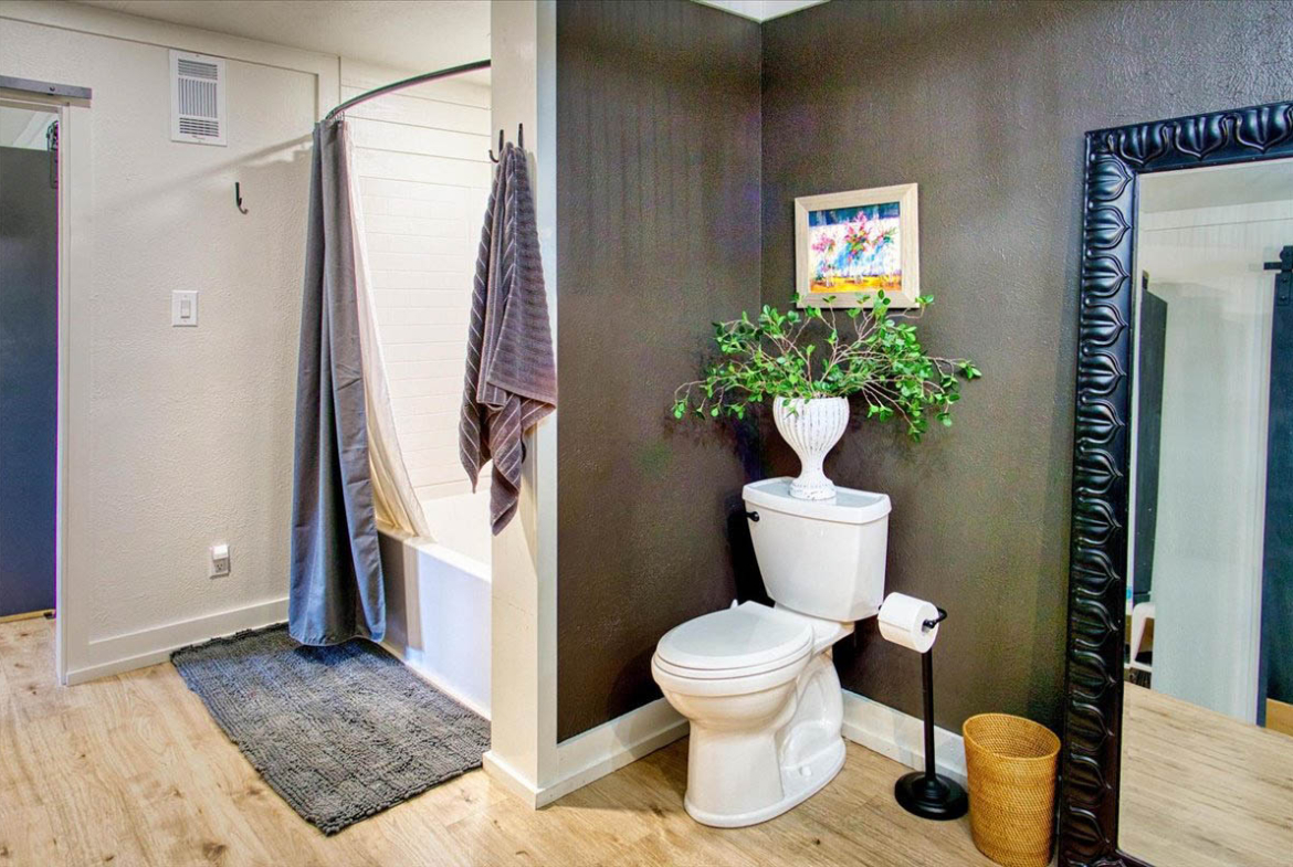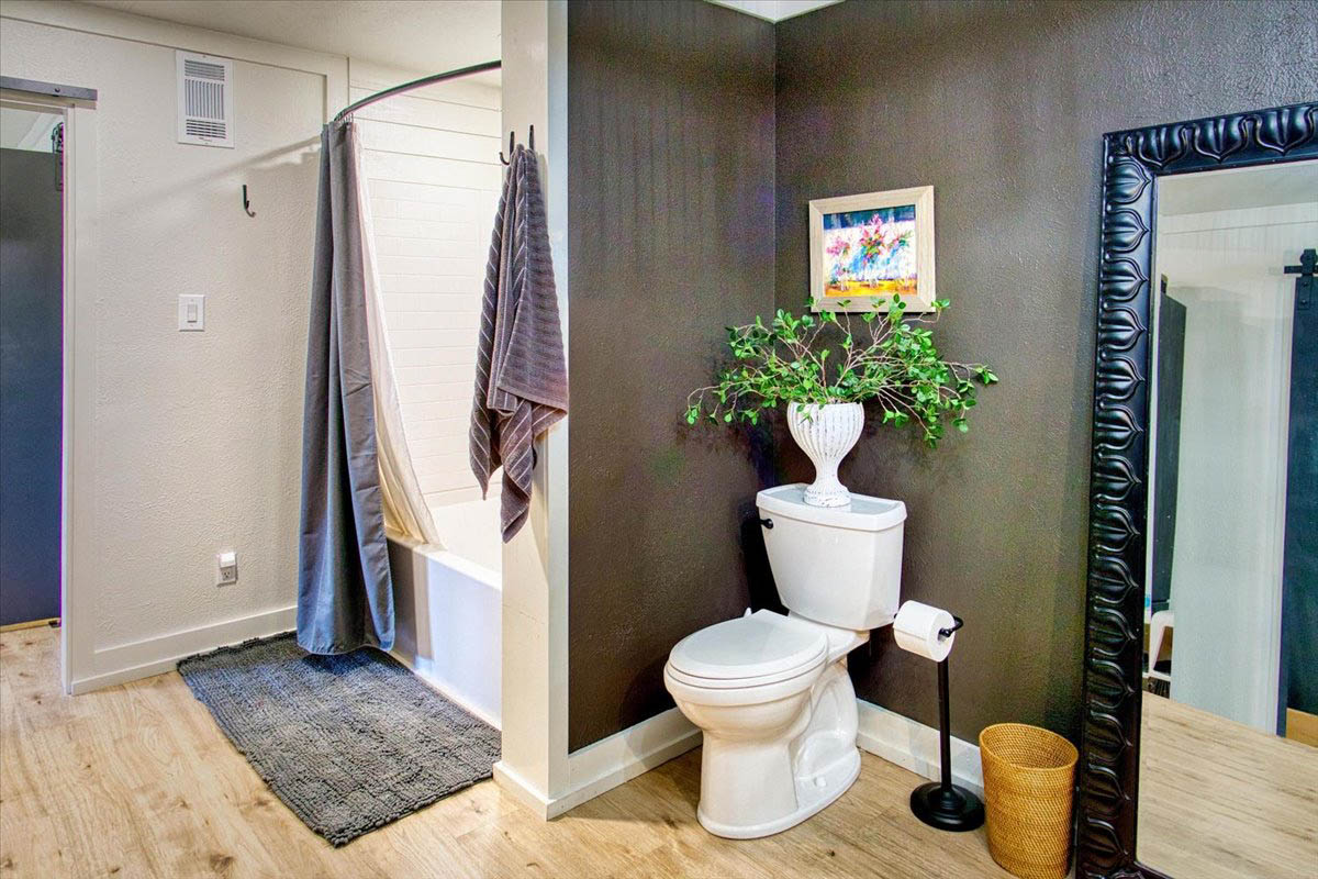 Located just a short walk from Mason ISD, this 2-bedroom, 1.5-bath home has been thoughtfully remodeled to offer both style and function inside and out. Dramatic accent walls add character and panache, while the large windows flood the space with natural light, keeping the home bright and airy. The open layout features durable laminate floors throughout, and the bedrooms are uniquely designed to maximize comfort and charm. The spacious master bathroom offers a relaxing tub-shower combo, perfect for unwinding.
