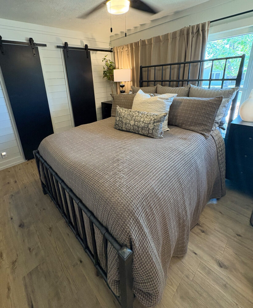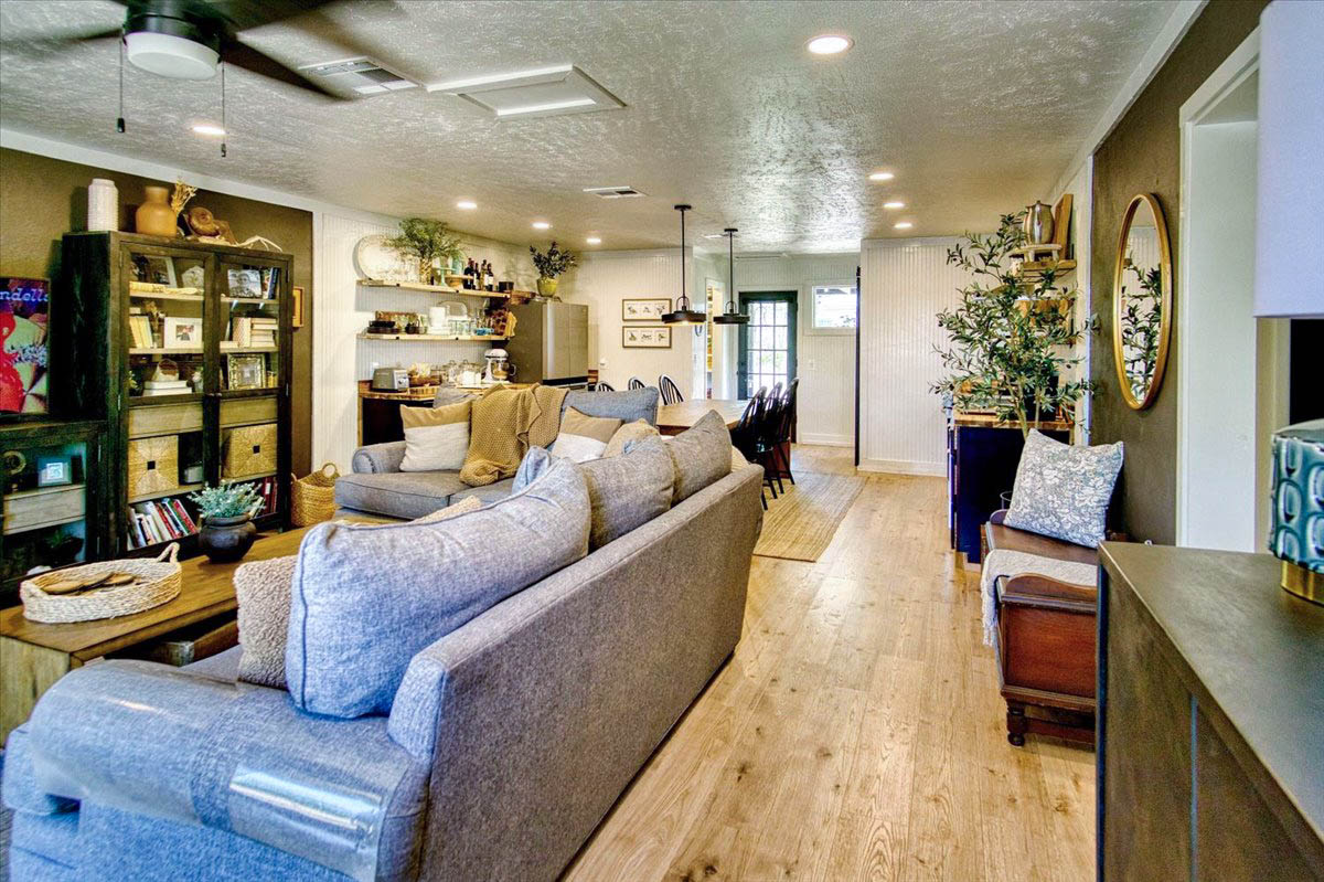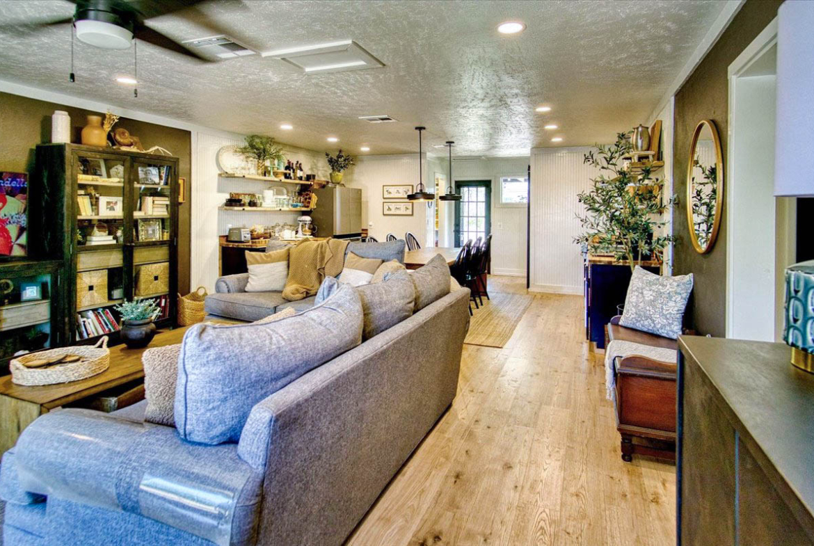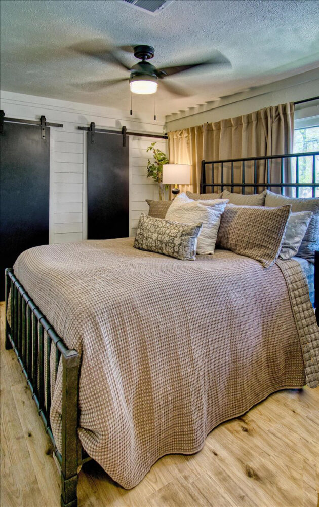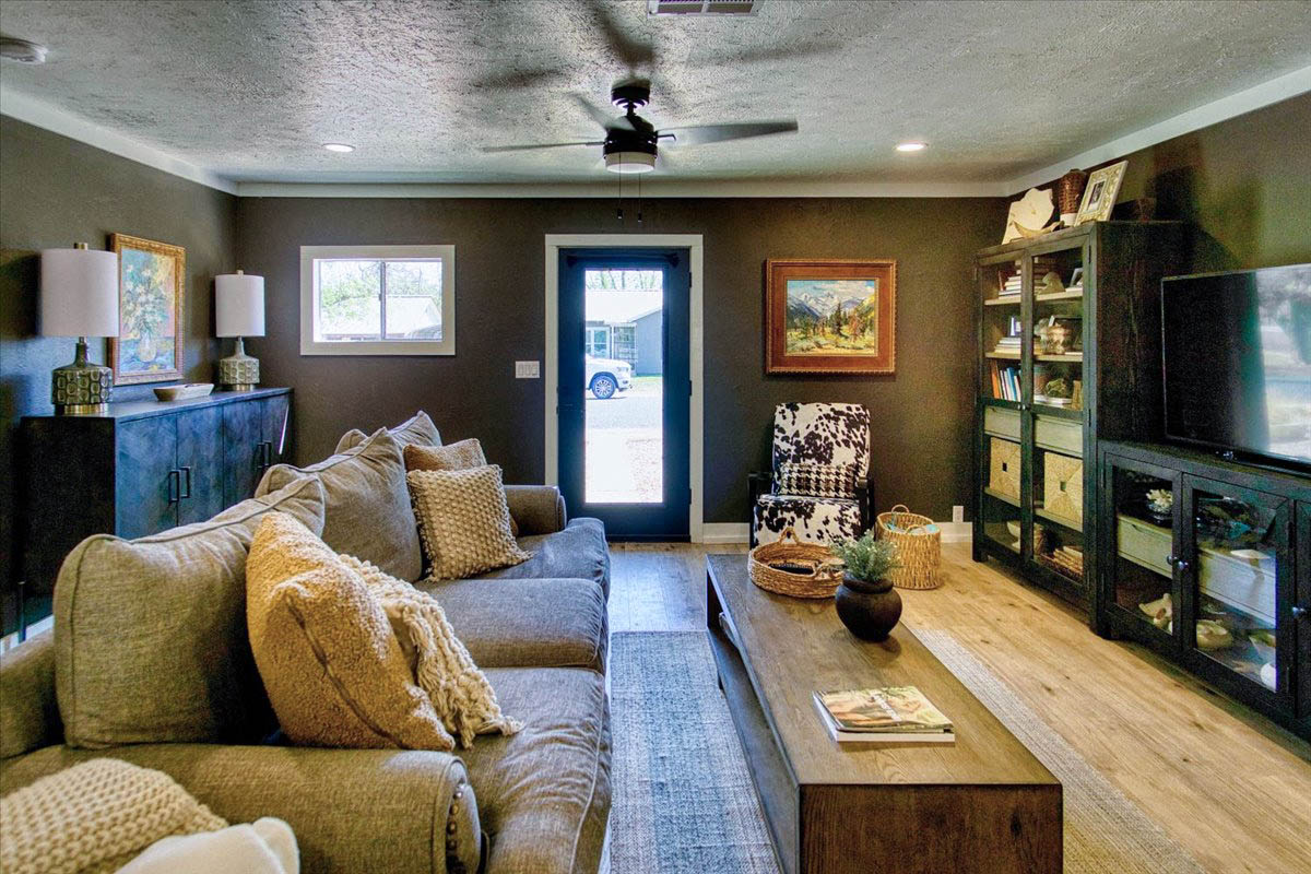 Located just a short walk from Mason ISD, this 2-bedroom, 1.5-bath home has been thoughtfully remodeled to offer both style and function inside and out. Dramatic accent walls add character and panache, while the large windows flood the space with natural light, keeping the home bright and airy. The open layout features durable laminate floors throughout, and the bedrooms are uniquely designed to maximize comfort and charm. The spacious master bathroom offers a relaxing tub-shower combo, perfect for unwinding.