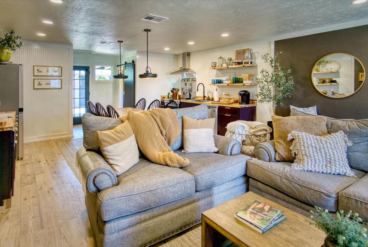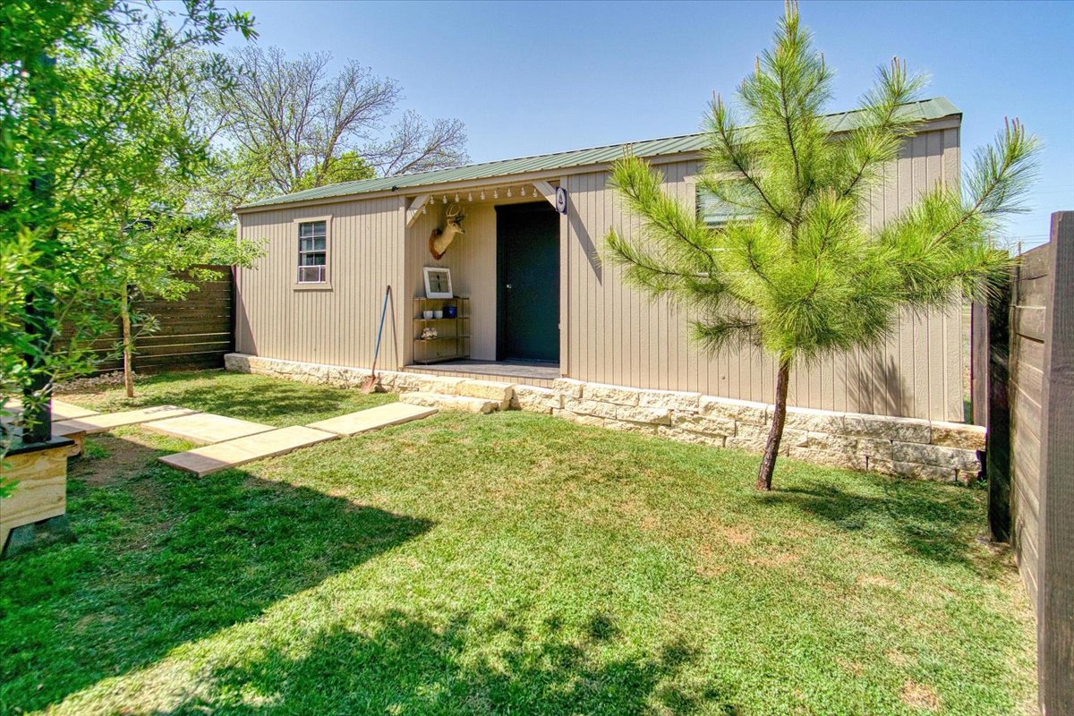 Out back, a 12x32 detached building provides versatile space for an office, guest suite, studio, or additional storage. The low-maintenance, landscaped yard ensures great curb appeal with minimal upkeep.
